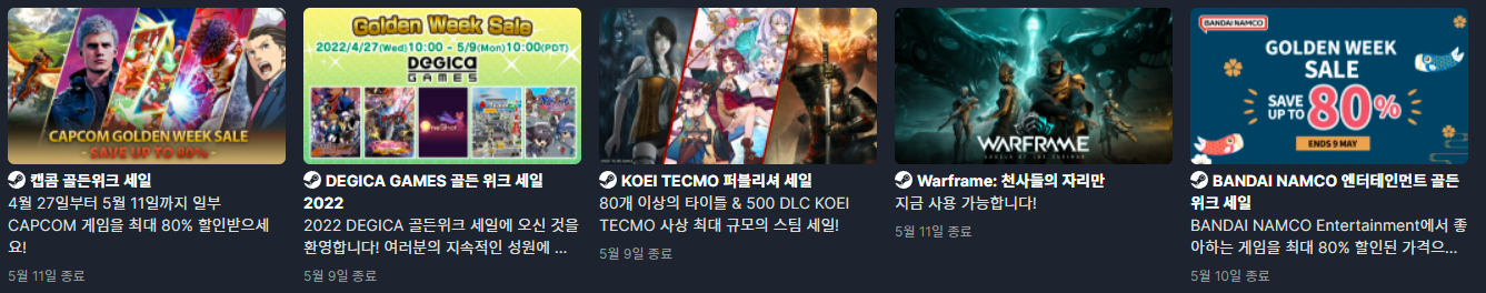 5월 2일까지 세일도 있으니 체크해 보세요. 피닉스 골든위크세일도 있지만, 매니아 게임인 부분으로 정보는 패스.