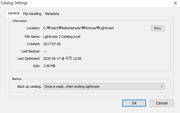 용량도 작은 프리뷰 파일이 너무 많다 보니 기동시간이 오래 걸리는 것이며, 카탈로그 최적화시 프리뷰 삭제를 안하는 라이트룸이.. 나중에는 결국 자잘한 자기의 이미지를 불러 들이다 GG를 치는 것 입니다.(메모리 활용에도 나쁜 영향을 끼치니 적당히 시간이 지난후에는 꼭 삭제하는 걸로... 합시다.) - 한동안은 카탈로그내 이미지 작성으로 내부 속도는 다소 떨어질 수 있습니다.